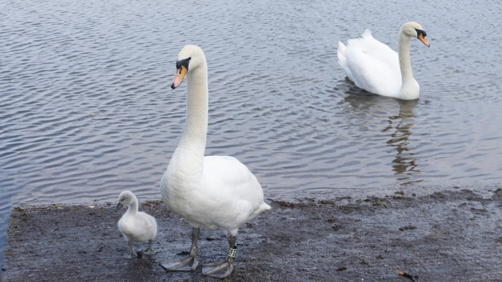 There were two swans with a single cygnet nearby on the lake so we gave them a rather wide berth. The cygnet was so fluffy it looked like a cuddly toy. When they went ashore it shook itself and waddled to its nest.