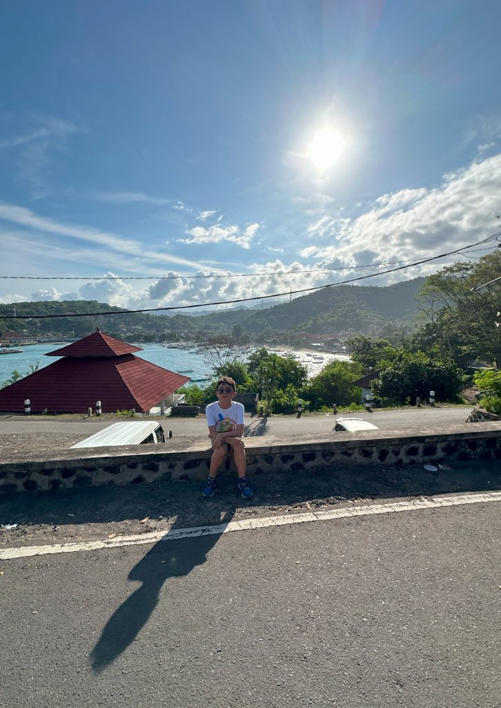 It was a quick flight from Singapore to Bali. When we arrived at the airport they had someone to pick us up. There was a piece of paper under a rock with Dad’s name on it. The man came and drove us to the place we were going it was called Padang Bai it took a couple of hours to get there.