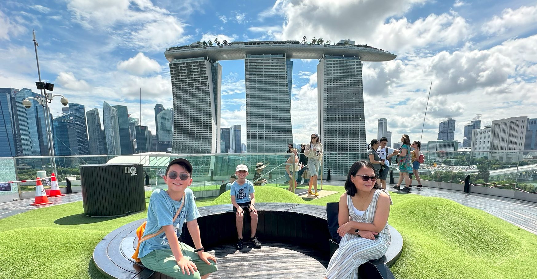 In Singapore we went sightseeing first we saw the Merlion which is a fountain of a lion with a fish’s bottom half instead of its hindquarters.